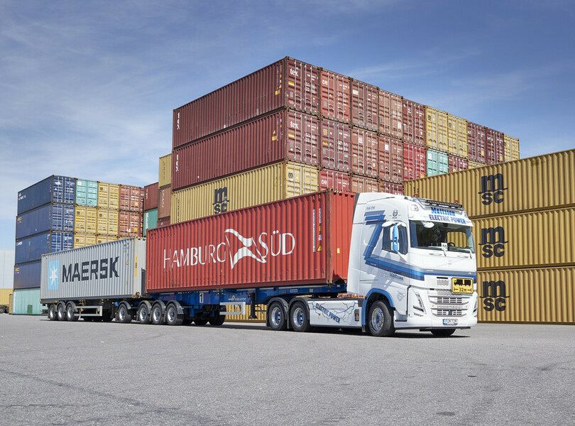 Das Transportunternehmen Mattson Akeri aus Göteborg testet einen Volvo FH Electric im so genannten High-Capacity-Transport (HCT). Der Lkw ist mit zwei Anhängern 32 Meter lang und kann ein Gesamtzuggewicht von 74 Tonnen bewältigen. Eingestezt wid das Fahrzeug im Hafengebiet der Stadt. Der Volvo FH Electric 6X4 wird während der Fahrerpause an zwei 180-kW-Schnellladegeräten der Spedition mit Ökostrom geladen und ist bis zu zwölf Stunden im Einsatz. Langfristig soll der Lang-Lkw auch zwischen Göteborg und der 70 Kilometer entfernten Stadt Boras verkehren.
