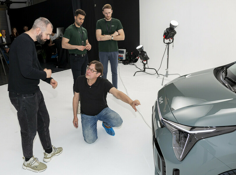 Autor Guido Borck im Gespräch mit den Designern des Kia Picanto. Foto: Autoren-Union Mobilität/Kia