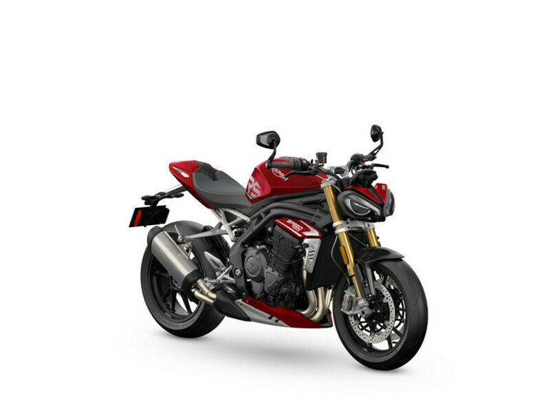 Triumph Speed Triple 1200 RS in Carnival Red mit Vorderkotflügel aus Sichtcarbon. Foto: Autoren-Union Mobilität/Triumph