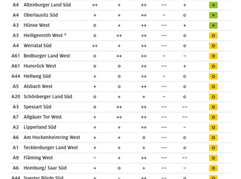mid Groß-Gerau - Vergleichstabelle Rastanlagen in Deutschland. ADAC