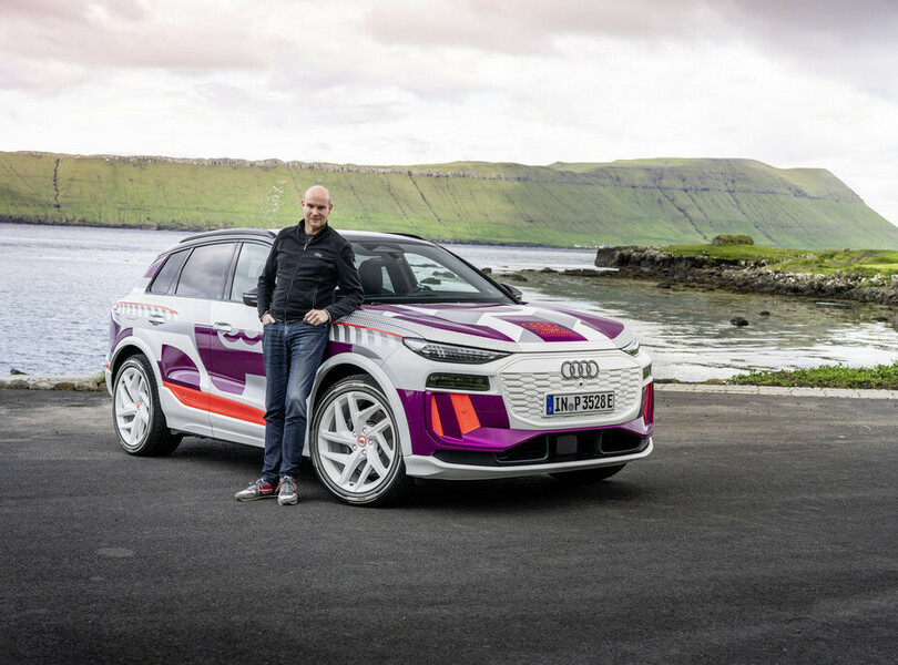 Autor Jens Meiners mit dem Audi Q6 e-Tron Prototyp. Foto: Autoren-Union Mobilität/Audi