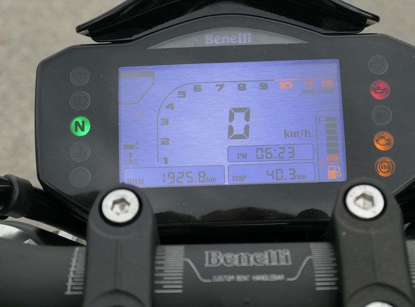 Dafür bietet die Benelli bei Dunkelheit ein abgedunkeltes ,,Nacht-Display" sowie bläulich umrahmte und daher leicht zu findende Lenkerschalter Foto: fbn