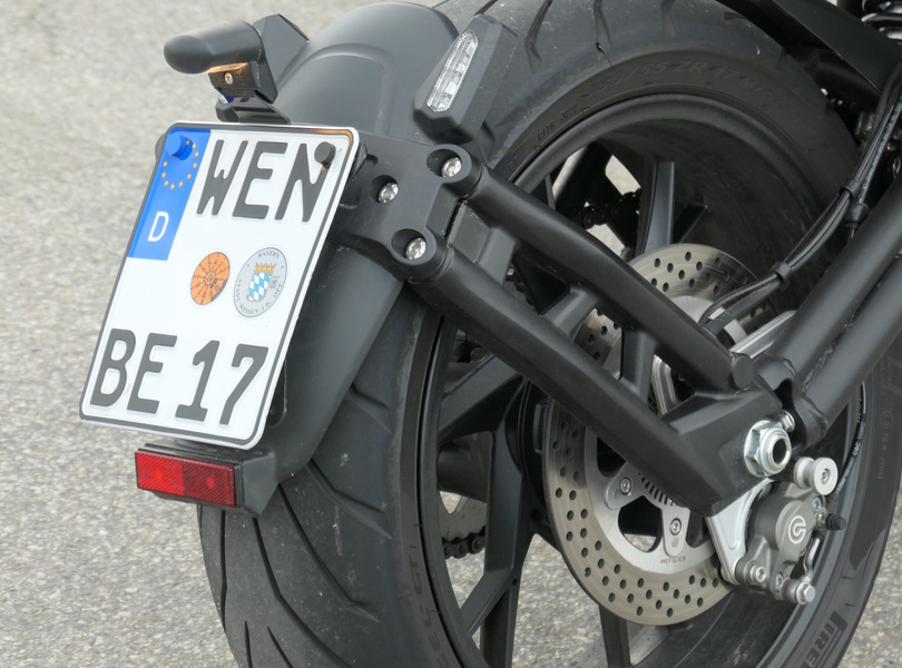 Auffällig ist das unverkleidete Hinterrad mit seitlich angeflanschter Kennzeichenhalterung Foto: fbn