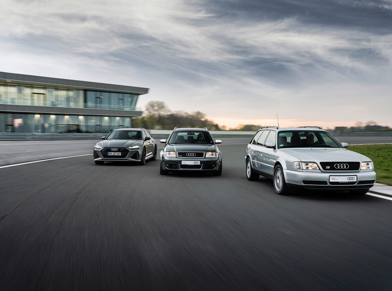 mid Groß-Gerau - Drei Generationen (v.l.n.r.): Audi RS 6 Avant performance (Farbe: Nardograu), Audi RS 6 Avant (1. Generation) und Audi S6 plus. Audi AG