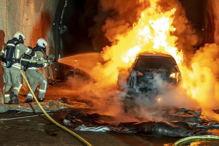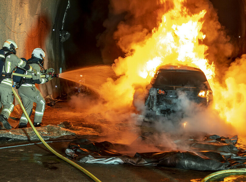 Brand- und Löschversuche mit Elektroautos im Tunnel. Foto: Autoren-Union Mobilität/Lunghammer/TU Graz