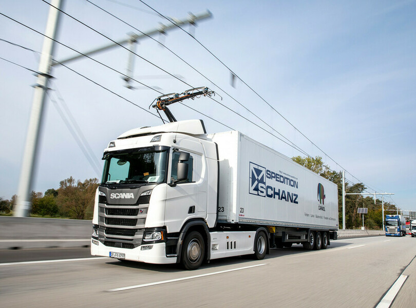 Der sogenannte ,,eHighway" auf der A5 in Hessen wurde gestern um sieben Kilometer verlängert. Auf dem Abschnitt zwischen den Anschlussstellen Langen-Mörfelden und Weiterstadt stehen laut Autobahn GmbH ab sofort nun in Fahrtrichtung Darmstadt rund zwölf Kilometer und in Fahrtrichtung Frankfurt fünf Kilometer Versuchsstrecke mit Oberleitungen zur Verfügung. Auf denen können Lkw mit Stromabnehmer elektrisch fahren und zugleich ihre Batterien aufladen.