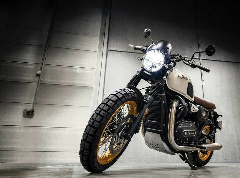Brixton bringt sein Topmodell nun auch in einer modischen Scrambler-Version. Die Cromwell 1200 X verfügt unter anderem über eine andere Sitzbank, Kniepads am Tank, ein kleines Windschild und ein Scheinwerfergitter sowie einen höheren und breiteren Lenker. Sturzbügel und eine Motorplatte schützen den Zweizylinder im Falle eines Falles. Die gold eloxierten Felgen sind mit dem Stollenreifen Pirelli Scorpion Rally bestückt. Mit 12.499 Euro liegt die X 1500 Euro über dem aktuellen Aktionspreis der Cromwell 1200. (aum)