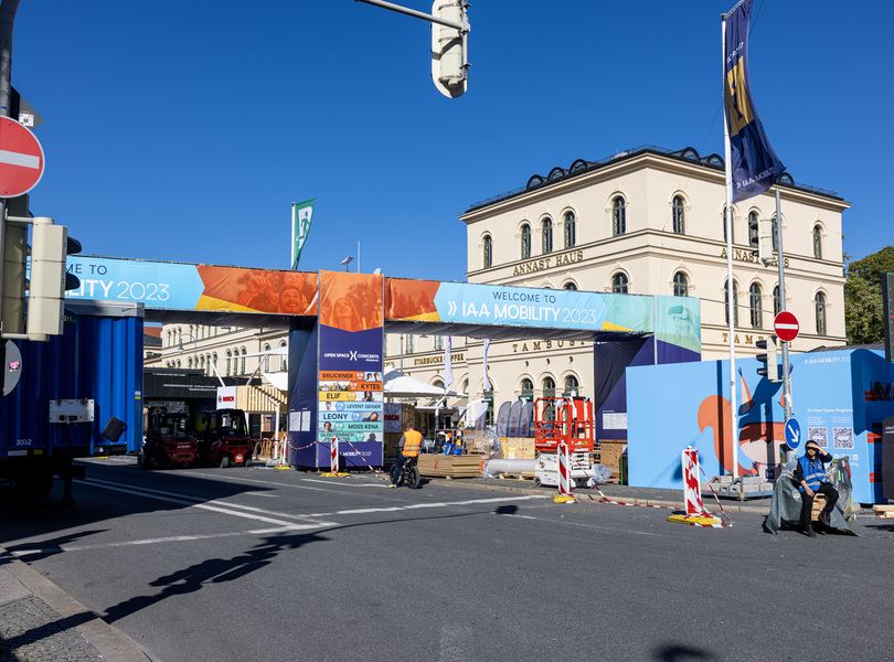 mid München - Einer der Eingänge der IAA in der Innenstadt, auch hier noch Baustelle am Montag. Mike Neumann / mid