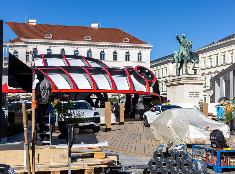 mid München - Der Porsche Stand in der Innenstadt war am Montag ebenfalls noch im Aufbau. Mike Neumann / mid