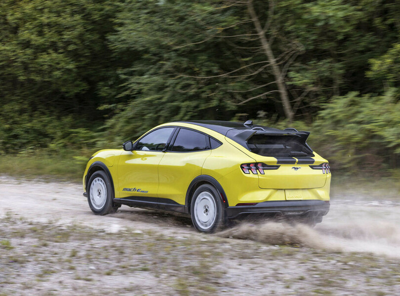 Ford wird ab Frühjahr den Mustang Mach-E auch in der neuen Ausführung ,,Rally" anbieten. Sie basiert auf dem zweimotorigen GT, bietet ein spezielles Fahrwerk mit zwei Zentimetern mehr Bodenfreiheit und den Fahrmodus ,,Rally Sport". Die Fahrbatterie hat eine Nettokapazität von 91 Kilowattstunden. Während die Leistung mit 358 kW (487 PS) gegenüber dem GT unverändert bleibt, strebt Ford eine Anhebung des Drehmoments auf rund 800 Newtonmeter an.