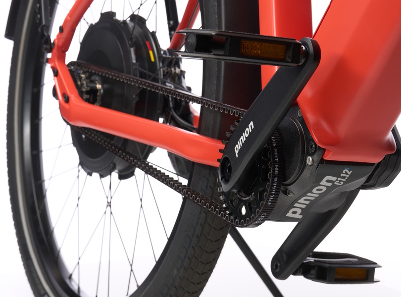 Die Kombination aus Mittelgetriebe, Riemenantrieb und Heckmotor ist sauber und formschön Foto: Möve Bikes