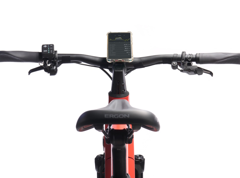 Auf der linken Lenkerseite befindet sich eine Bedieneinheit für den Antrieb. Als Bordcomputer kann ein verbundenes Smartphone dienen Foto: Möve Bikes