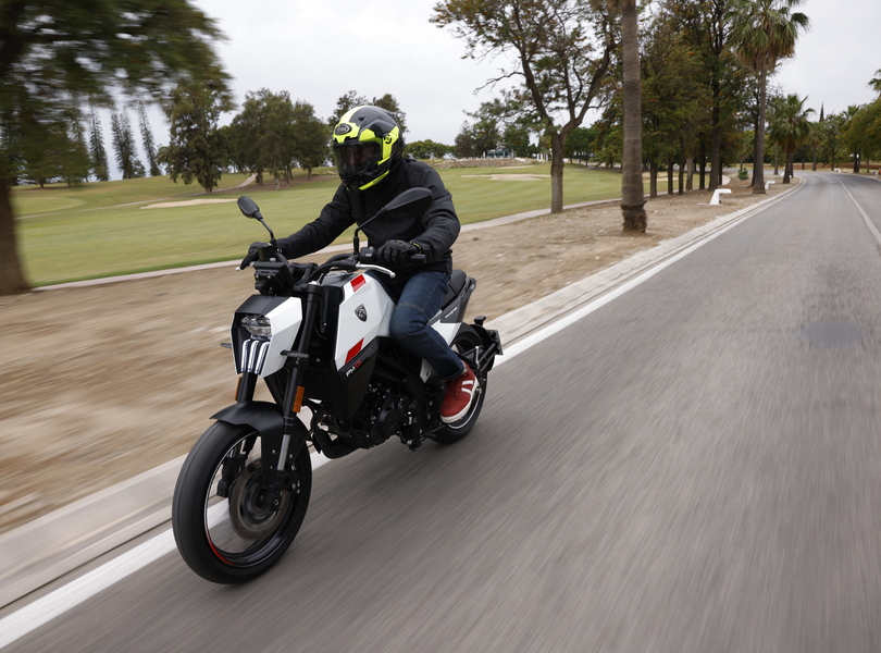 In typischer Landstraßenroadster-Manier sitzt der Pilot mit angenehmen Kniewinkeln aufrecht in 81 Zentimetern Höhe und hat die leicht nach oben und hinten gekröpfte, recht breite Lenkstange bestens im Griff Foto: Peugeot Motocycles