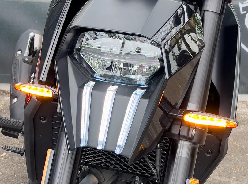 Das Tagfahrlicht weist nach Art des (automobilen) Hauses drei Längslinien als Symbol für die Krallen des Peugeot-Löwen auf Foto: Peugeot Motocycles