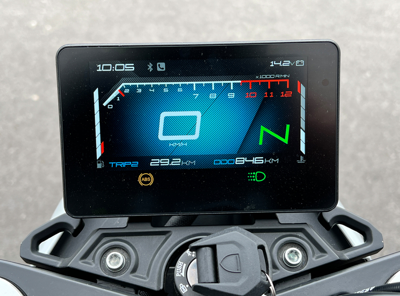 Als kleines Highlight entpuppt sich das Cockpitarrangement aus farbigem TFT-Display und geschickt in der Lenkerklemmung untergebrachtem USB-Anschluss Foto: Peugeot Motocycles