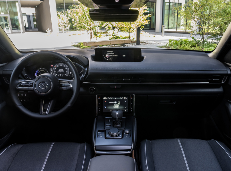 Übersichtlich, aber nicht mehr taufrisch: das Cockpit des Mazda MX-30 R-EV Foto: Mazda