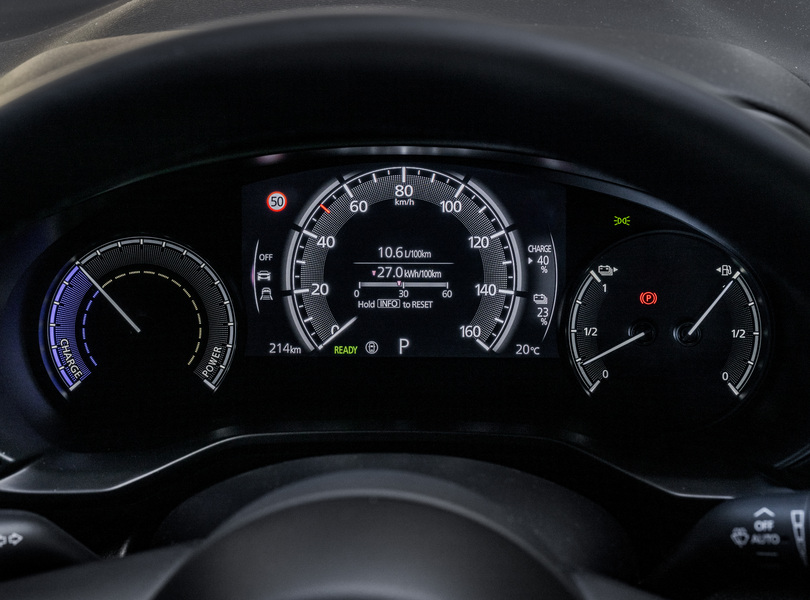 Im Zentralinstrument werden auch der Strom- und der Spritverbrauch angezeigt Foto: Mazda