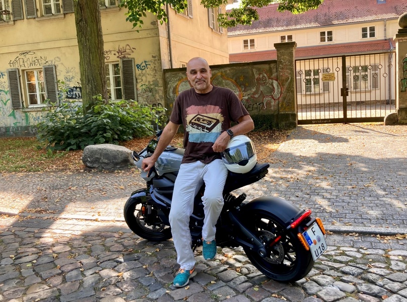 mid Berlin - Autor Rainer Unruh in trauter Zweisamkeit mit der LiveWire One. Johannes Unruh / mid