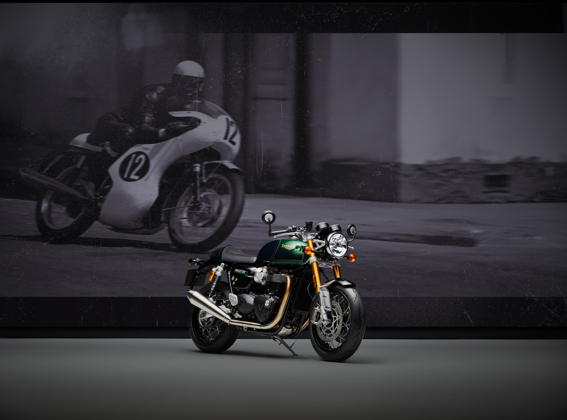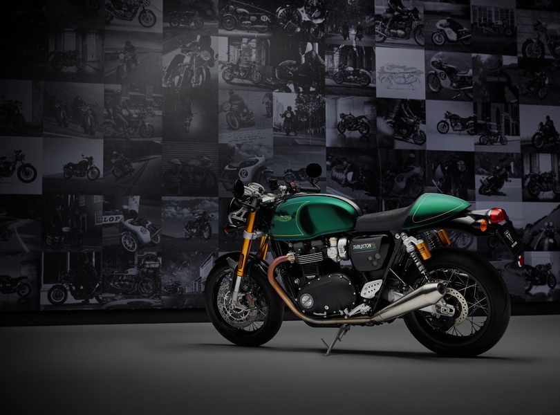 Basis des Abschiedsmodells ist die aktuelle Thruxton RS, die von einem flüssigkeitsgekühlten 77 kW/105 PS starken Zweizylindermotor angetrieben wird Foto: Triumph
