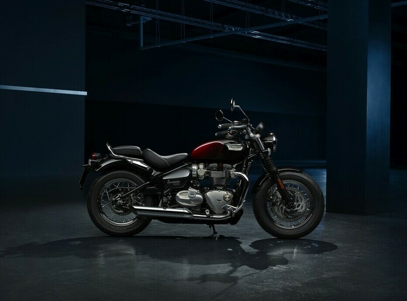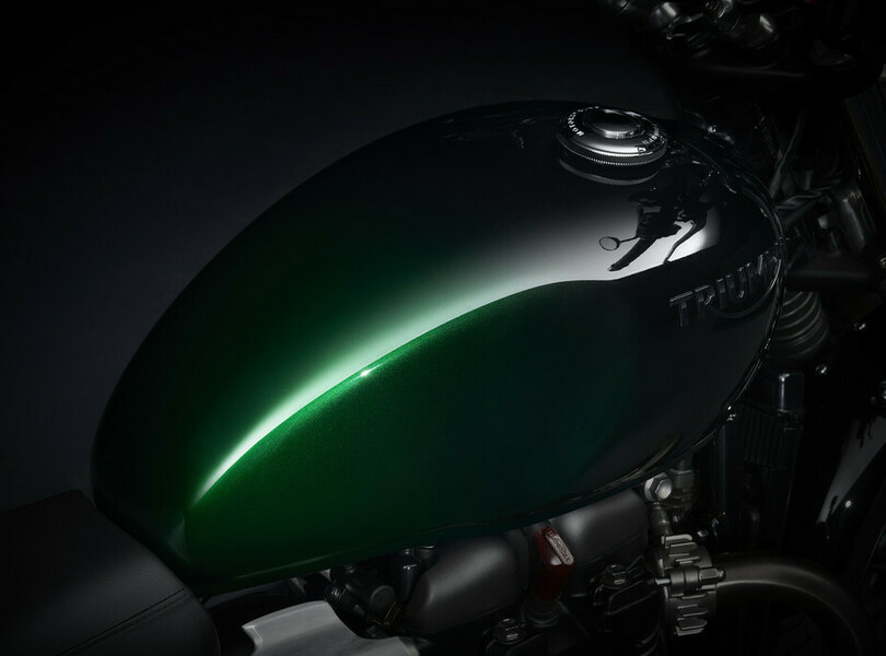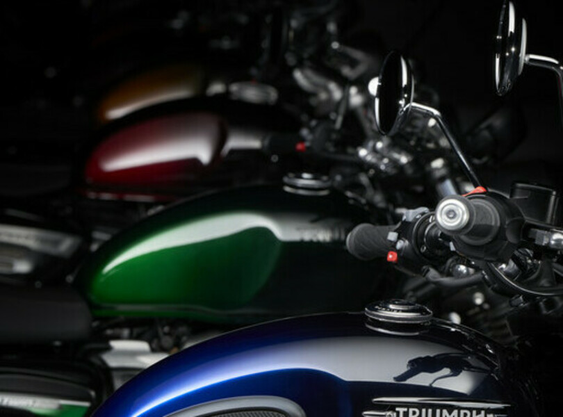 Triumph bietet ab November acht Modelle seiner Modern-Classics-Baureihen als ,,Stealth Editon" an. Sie zeichnen sich durch eine von Hand aufgetragene Tanklackierung aus, die je nach Lichteinfall eine besondere Farbe abgibt. Die Bonneville Speedmaster Stealth Edition ist rot, ebenso die Speed Twin 1200, die Bobber violett lackiert, T100 und T120 tragen Blau, die Speed Twin 900 ist grün, die Scrambler 900 orange und die Bonneville T120 Black matt-silber gehalten.