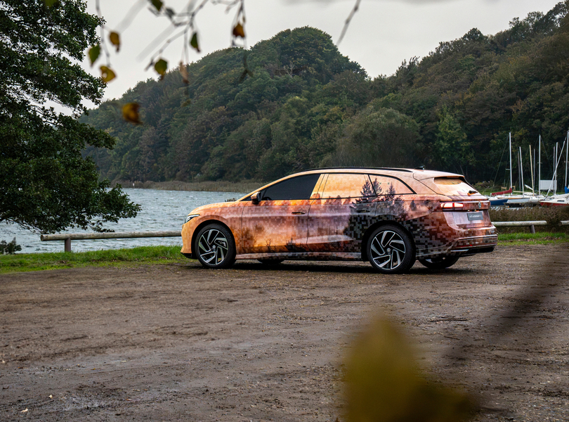 mid Groß-Gerau - Passend zur Jahreszeit ist die Tarnung des ID.7 Tourer im Indian-Summer-Look gehalten. VW