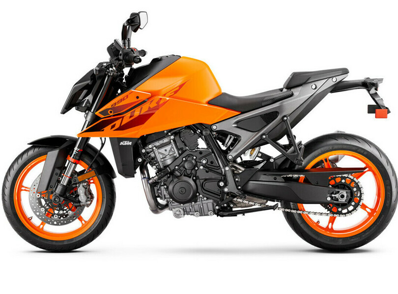 KTM spielt weiter auf der Klaviatur der Duke und stellt in Mailand auf der EICMA (-12.11.) die 990 Duke ins Rampenlicht. Sie trägt den auf 947 Kubikzentimeter aufgebohrten Motor der 890 Duke R, der es mit 123 PS (90 kW) und 103 Newtonmetern auf etwas mehr bringt. Die 990 Duke soll außerdem zehn Kilogramm leichter sein und die 890 ablösen. Die Front zeichnet sich durch den weiterentwickelten LED-Scheinwerfer aus. Positions- und Tagfahrlicht passen sich automatisch an die Umgebungshelligkeit an. Die Federelemente sind fünffach verstellbar, das Fünf-Zoll-Display zeigt überarbeiette Grafiken und eine neue Menüstruktur. Dazu gehört auch die Anzeige von Schräglagendaten sowie optional ein Track-Fahrmodus mit Laptimer- und Telemetrie-Statistiken. Für das Laden von Endgeräten steht ein USB-C-Anschluss zur Verfügung.