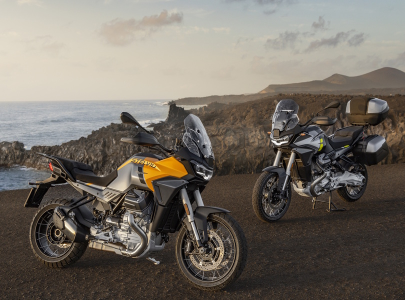 In zwei Varianten wird Moto Guzzi die neue Stelvio Anfang 2024 ins Rennen schicken Foto: Moto Guzzi