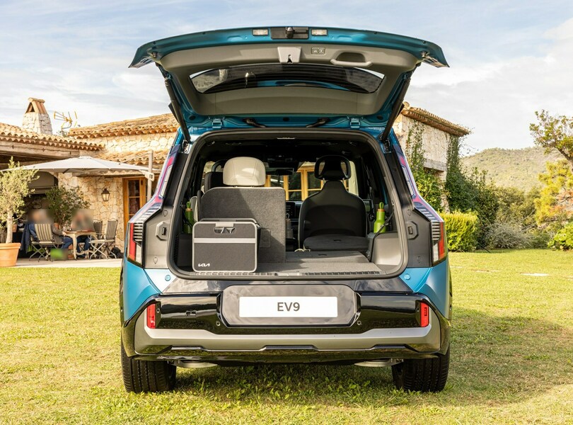 mid Nizza - Der EV9 öffnet die Heckklappe automatisch, wenn man eine Zeit lang hinter dem Fahrzeug mit dem Schlüssel in der Tasche steht. Mike Neumann / mid
