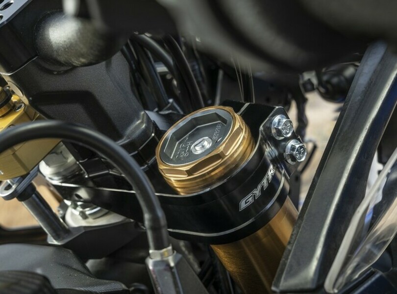 Yamaha hat für alle, die noch mehr aus der Ténéré 700 World Raid herausholen wollen, drei GYTR-Kits (Genuine Yamaha Technology Racing) entwickelt. Das einfach zu installierende Performance-Kit besteht aus Rallyesitz und einem Satz neuer Fußrasten. Die GYTR ECU, die Akrapovic-Volltitan-Auspuffanlage und der Luftfilter heben die Motorleistung an. Das Handling-Kit wiederum ersetzt die serienmäßigen Räder und Federelemente der World Raid. Das Rally-Kit schließlich beinhaltet eine Reihe von High-End-Rallyezubehör, darunter Kraftstofftanks mit großem Fassungsvermögen, einen echten Rallye-Lenkersatz mit Verkleidungsscheibe, der den Einbau von Roadbook-Instrumenten, Hochleistungsscheinwerfern und allen nötigen Komponenten ermöglicht, die für die Teilnahme an Raid-Wettbewerben erforderlich sind.