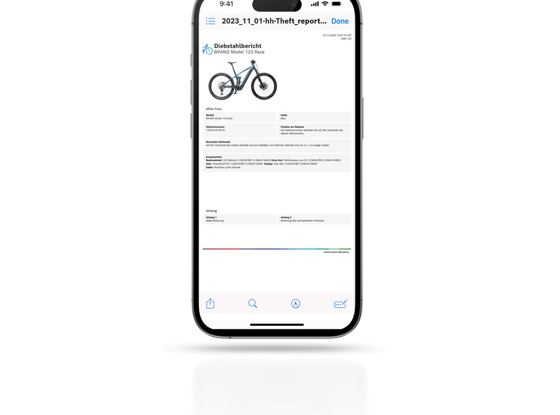 Ende November kommt die Funktion "Diebstahlbericht", die es Nutzern erleichtert, zeitnah und inhaltlich umfassend Versicherung und Polizei über einen Diebstahl zu informieren Foto: Bosch