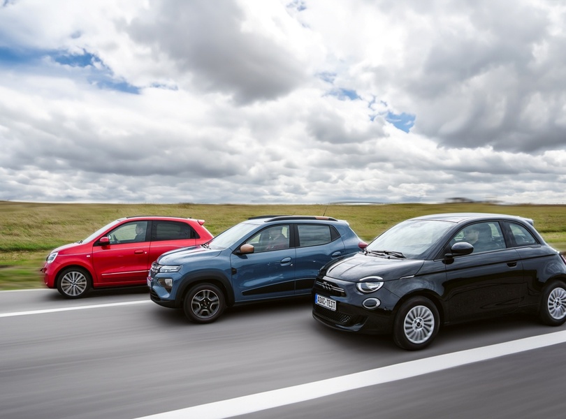 mid Groß-Gerau - Die drei getesteten Elektroautos unter 30.000 Euro: der Fiat 500e, der Dacia Spring Electric und der Renault Twingo e-Tech. ADAC