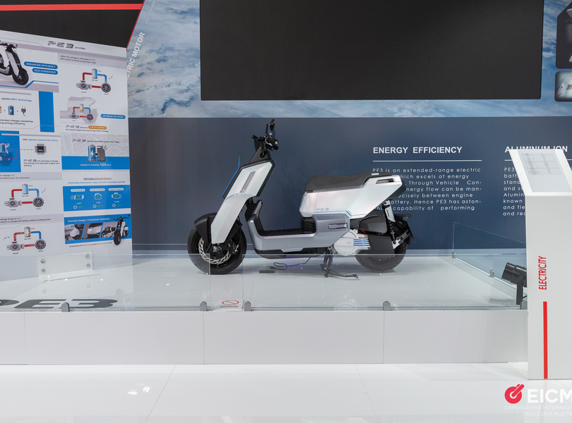 Ist das die E-Roller-Zukunft: Der SYM PE3 fährt mit Strom und Benzin Foto: EICMA