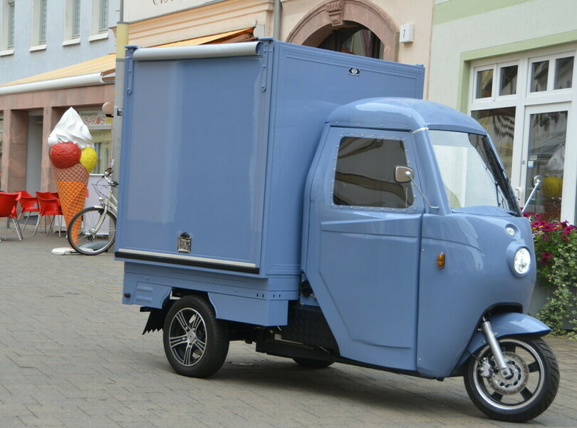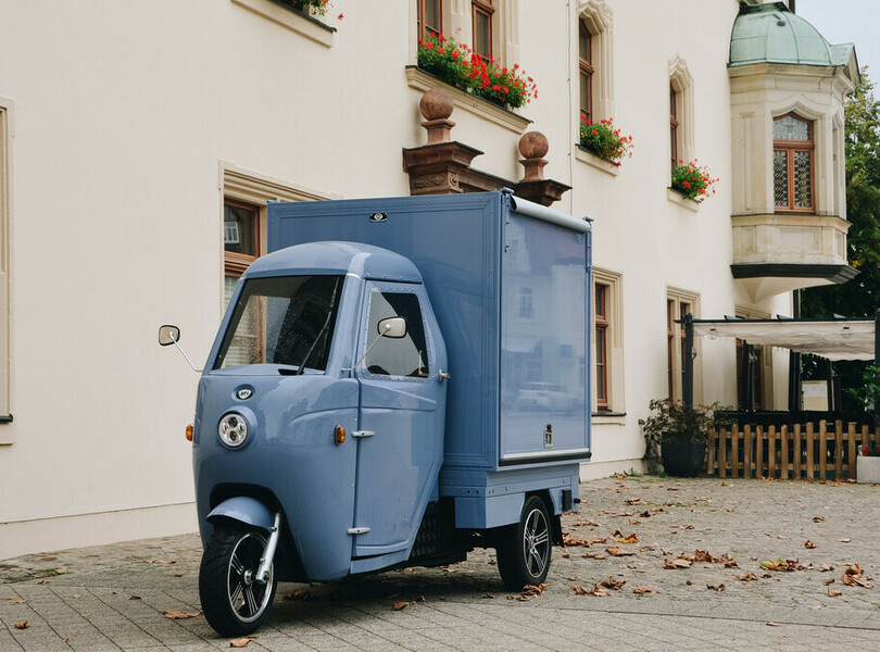 Ari Motors, Spezialist für kleine Elektro-Transportfahrzeuge, bringt sein Lastenmoped 345 jetzt als Modell ,,Retro" auch mit einer geschlossenen Kabine im klassischen Stil einer Vespa Ape auf den Markt. Lieferbar ist das Fahrzeug als Koffer und Pritsche in je drei Aufbau-Größen mit bis zu 2,05 Kubikmetern Volumen bzw. 1,73 Quadratmetern Ladefläche. Die Zuladung beträgt bis zu 325 Kilogramm. Zudem gibt es das Air 345 Retro als Food Truck und Verkaufsfahrzeug oder rollenden Infostand in je zwei Varianten. Caterer haben bei der Gestaltung des Ari 345 Retro Food Truck freie Wahl - vom Einbau einer Kaffeemaschine bis zum Hot-Dog-Maker.