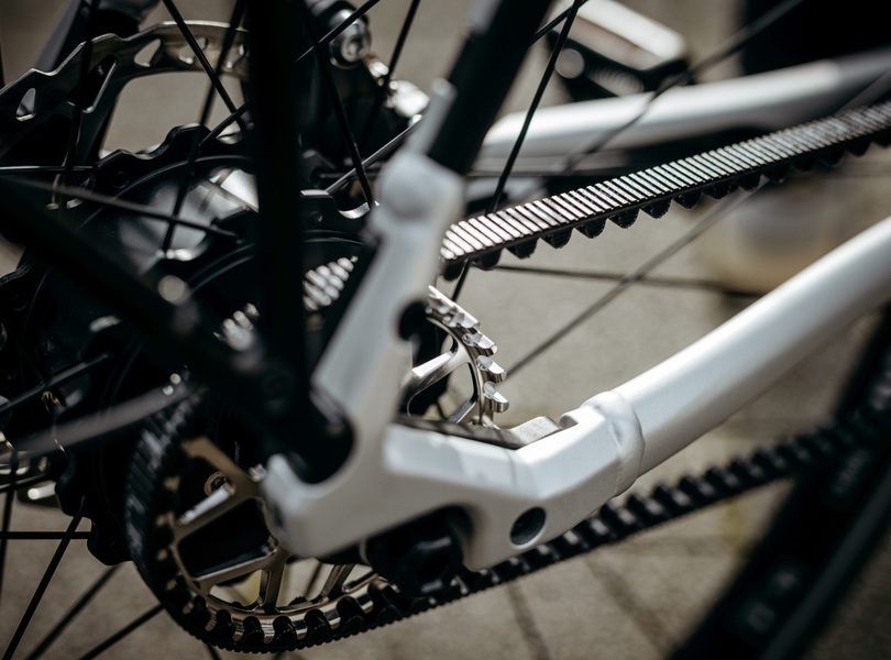 Per Riemenantrieb gelangt die Pedalkraft an das mit einem Radnabenmotor bestückte Hintrrad Foto: Stevens