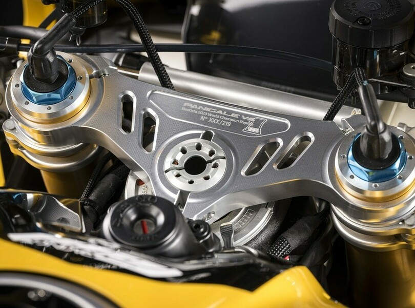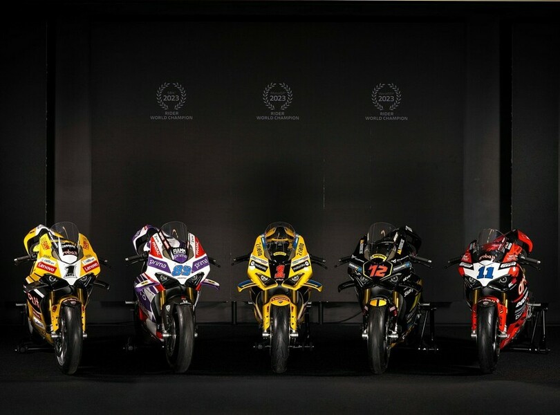 Ducati feiert das Triple der Titelgewinne im Moto GP, in der World SBK und World SSP mit fünf Sonderserien der Panigale. Sie sind eine Hommage an die Desmosedici GP von Francesco Bagnaia, Jorge Martín und Marco Bezzecchi, der Panigale V4 R von Álvaro Bautista und der Panigale V2 von Nicolò Bulega. Die Panigale V4, die Bagnaia und Bautista gewidmet sind, präsentiert sich in der gelben Lackierung, mit der die beiden Champions bei den Rennen in Misano antraten.