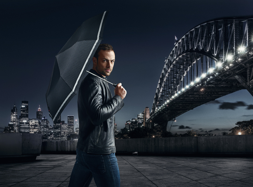 Beim Taschenschirm T.200 medium Duomatik von Knirps leuchten bestimmte Bereiche des Schirmdachs auf, wenn sie angestrahlt werden Foto: Knirps