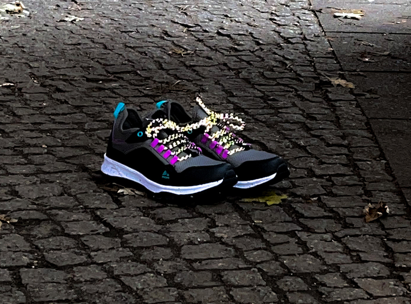 In die schwarzen Schnürsenkel von Reflective Berlin (ab 13 Euro) wurde weißes Reflexgarn gewoben Foto: Reflective Berlin