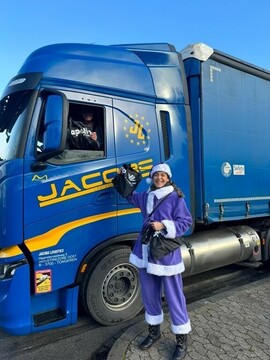 Ohne sie geht kaum etwas: Lkw-Fahrer mit ihren Transportern, Lastwagen und Sattelschleppern sorgen fu?r termingerechte Wares. Um den Truckern gerade in dieser besonderen Zeit ein großes Dankescho?n auszusprechen und eine kleine Freude zu Weihnachten zu bereiten, fa?hrt ein Promotion-Transporter von Apollo Tyres insgesamt neun Lkw-Parkpla?tze in Rheinland-Pfalz, Bayern, Sachsen-Anhalt, Niedersachsen, und Nordrhein-Westphalen an. Mit an Bord sind Goodie-Bags - gefu?llt mit warmen Strickmu?tzen, Milka-Weihnachtsma?nnern und Sonax-Pra?senten.