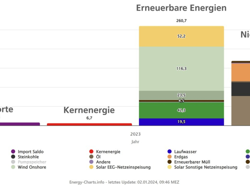 mid Groß-Gerau - Erneuerbare Energien lieferten im vergangenen Jahr 59,7 Prozent der öffentlichen Nettostromerzeugung. Fraunhofer ISE