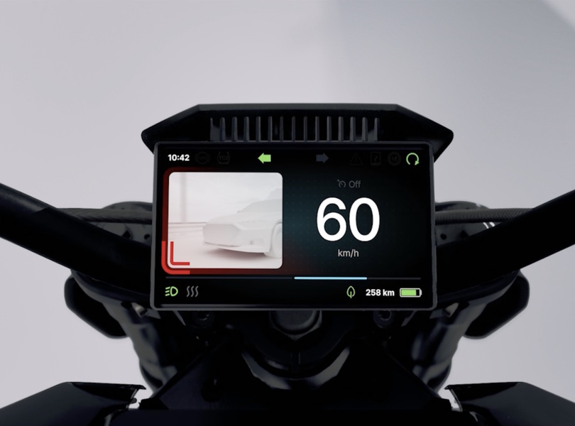 Im neuen Display kann ein Tot-Winkel-Warner für von hinten sich nähernden Fahrzeugen warnen Foto: Verge Motorcycles