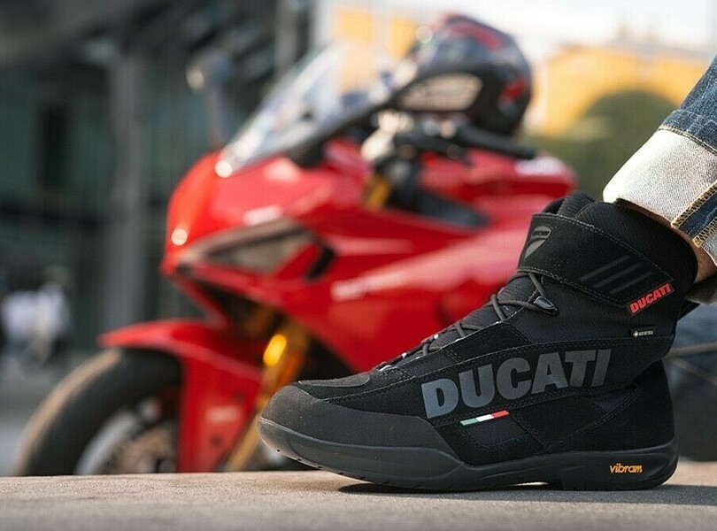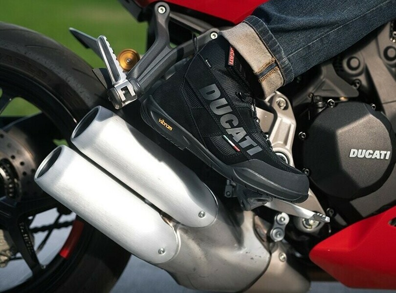 Ducati erweitert seine Bekleidungskollektion um den kurzen Schnürstiefel Company C4. Er ist vor allem für Alltagsfahrten und kleine Touren im urbanen Umfeld gedacht. Das Obermaterial besteht aus Mikrofaser und technischem Gewebe. In Verbindung mit dem Schnür-/Klettverschluss verspricht der Stiefel mit wasserdichter und atmungsaktiver Gore-Tex-Membran auch beim Gehen einen hohen Tragekomfort.