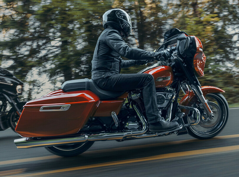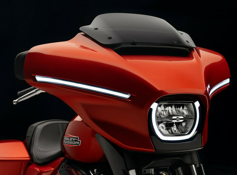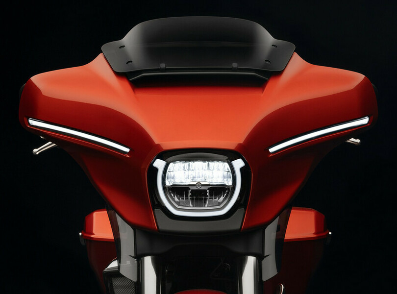 Bei Harley-Davidson eröffnet die vollständig überarbeitete Street Glide den diesjährigen Neuheitenreigen, der fünf Modelle aus drei Baumreihen umfasst. Der Milwaukee-Eight 117-Motor wurde auf mehr Leistung getrimmt und liefert künftig mit 109 PS (80 kW) noch einmal vier PS mehr als zuletzt in der Street Glide ST. Die Spitzenleistung liegt zudem bereits früher an. Das maximale Drehmoment steigt von 168 auf 175 Newtonmeter bei weiterhin 3500 Umdrehungen in der Minute.