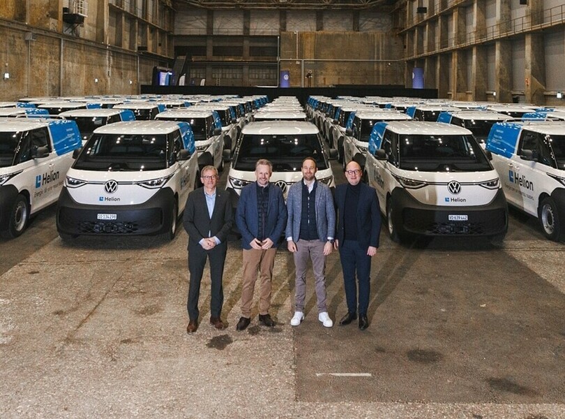 In der Schweiz hat die bislang weltweit größte Fahrzeugübergabe von VW-Elektrotransportern stattgefunden. Das Photovoltaikunternehmen Helion, das auch Wärmepumpen und Ladelösungen für Elektroautos anbietet, übernahm 100 ID Buzz Cargo. Sie ersetzen die bisherigen, konventionell angetriebenen Servicefahrzeuge. Die Flotte soll mit selbst produziertem Solarstrom CO2-neutral betrieben wird.