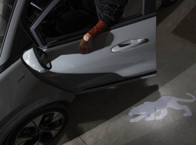 Beim Öffnen der Fahrertür wird eine Puma-Grafik auf die Straße projiziert Foto: Ford