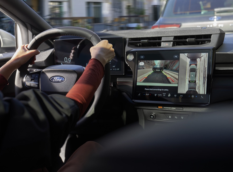 Auf dem auf 12 Zoll gewachsenen Touchscreen können Kamerabilder eine 360-Grad-Ansicht ums Fahrzeug anzeigen Foto: Ford