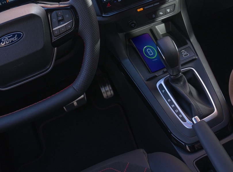 Smartphones lassen sich im Puma künftig drahtlos mit dem Infotainmentsystem koppeln. In der Mittelkonsole können die Handys ebenfalls kabellos Strom laden Foto: Ford