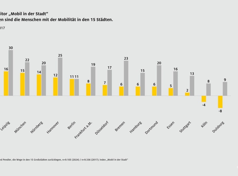 In keiner anderen deutschen Großstadt ist die Zufriedenheit der Einwohner, Pendler und Besucher mit der örtlichen Mobilitätssituation größer als in Dresden. In Duisburg und Köln sind die Menschen mit ihr hingegen überwiegend unzufrieden. Das zeigt der aktuelle ADAC Monitor 'Mobil in der Stadt'.