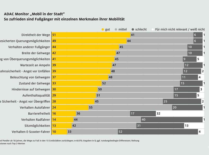 mid Groß-Gerau - Die höchsten Zufriedenheitswerte unter allen Fortbewegungsarten erzielt der Fußverkehr. ADAC / ADAC Grafik
