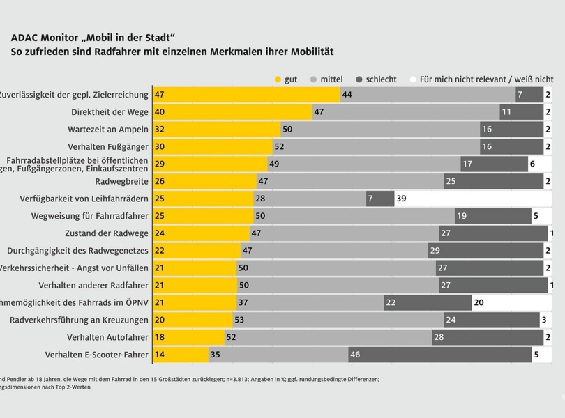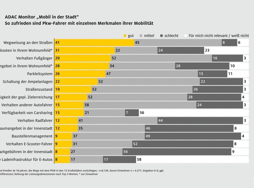 mid Groß-Gerau - Pkw-Fahrer sind am unzufriedensten mit ihrer Mobilitätssituation in den Großstädten. ADAC / ADAC Grafik