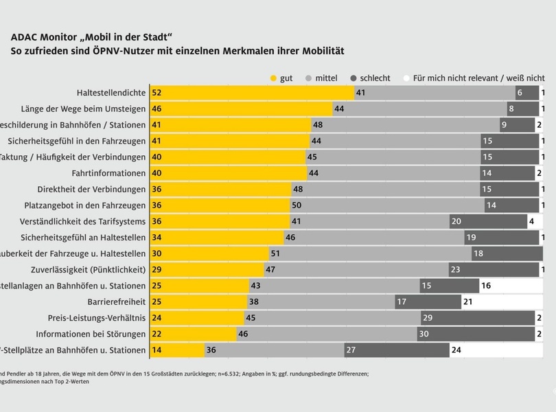 mid Groß-Gerau - ÖPNV-Nutzer sind mit der Mobilität in Großstädten überwiegend zufrieden. ADAC / ADAC Grafik